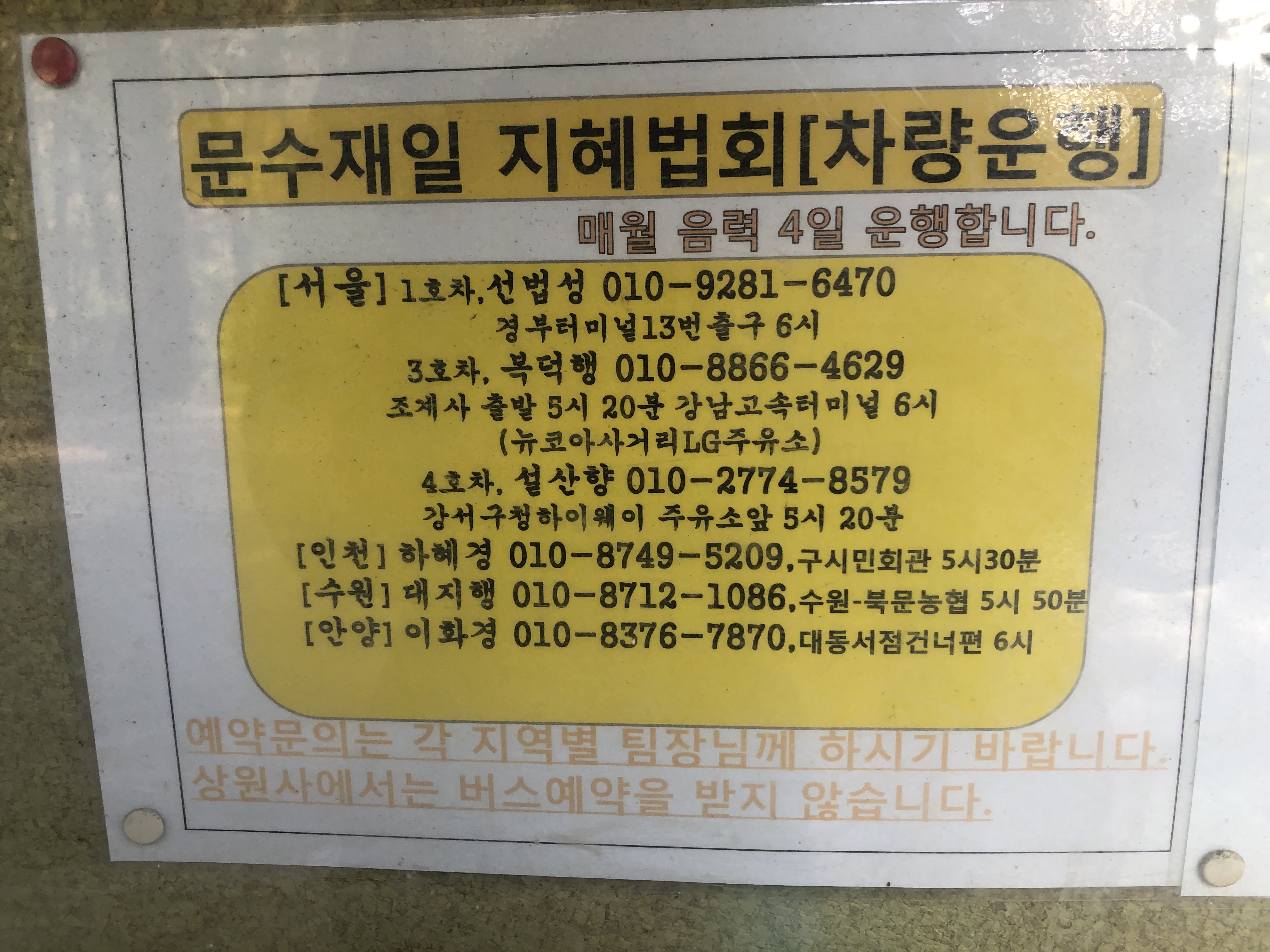 문수재일 지혜법회 차량운행