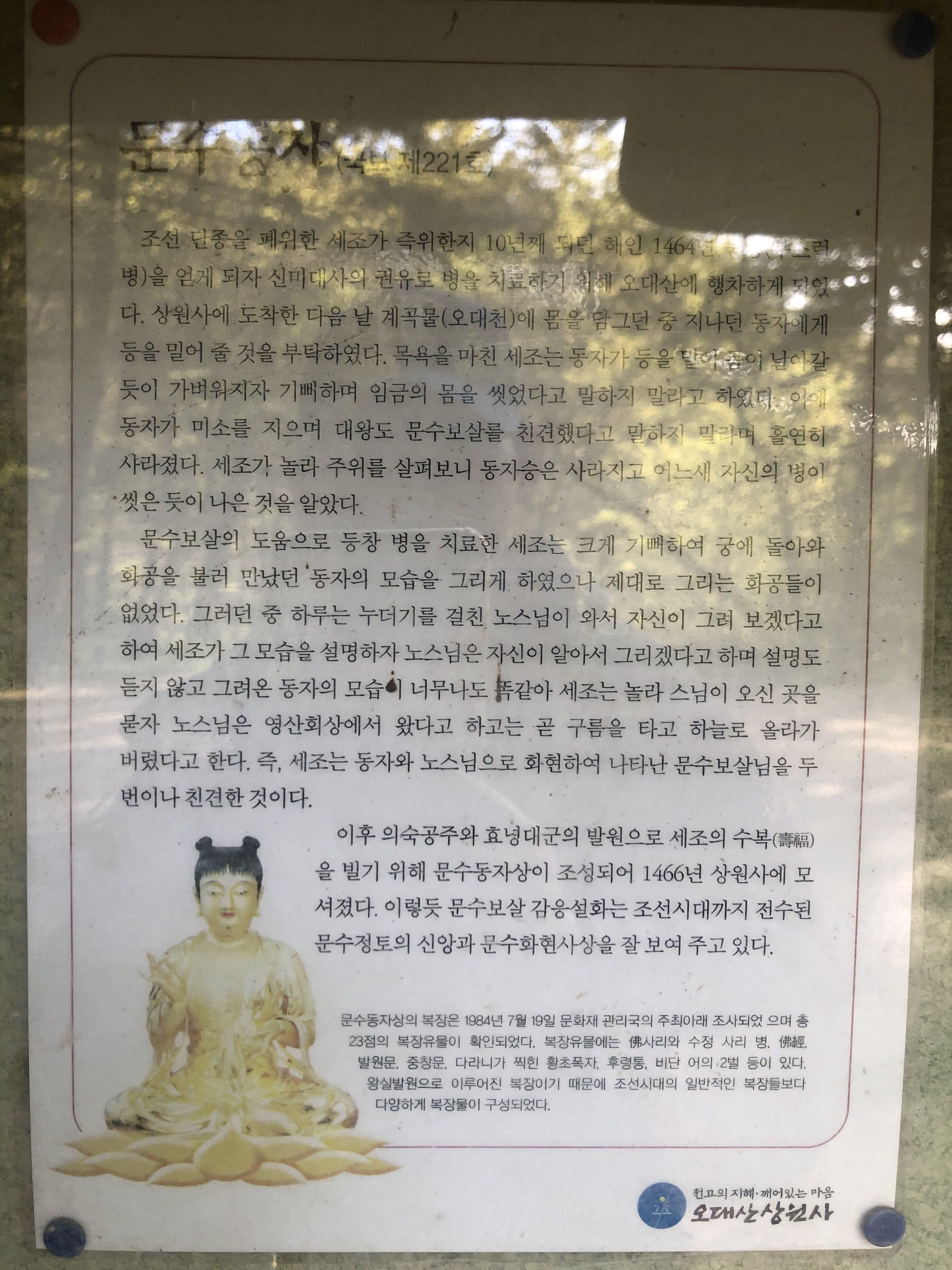 문수동자에 대한 설명이 있다.